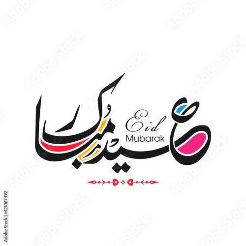 Arabic Calligraphic text of Eid Mubarak for the Muslim community festival celebration.