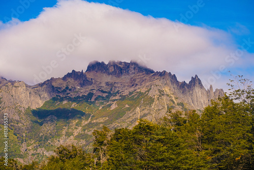 Araucarias and lake in the Lanin National Park of Argentina and Chile