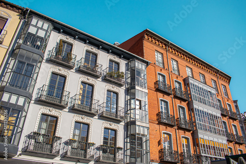 Arquitectura de las casas residenciales en la plaza de la Rinconada de Valladolid, España