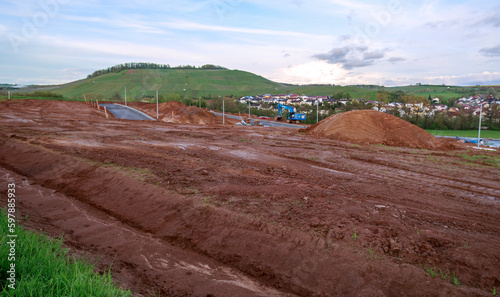 auf einer Baustelle in einem Neubaugebiet entstehen Zufahrtsstraßen