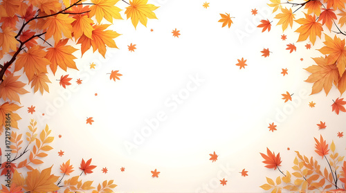 Autumn Maple Leaves Border with Falling Leaves on White Background