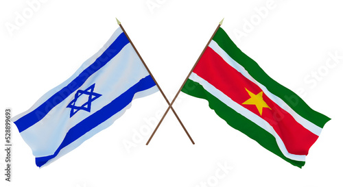 Background, 3D render for designers, illustrators. National Independence Day. Flags Israel and Suriname