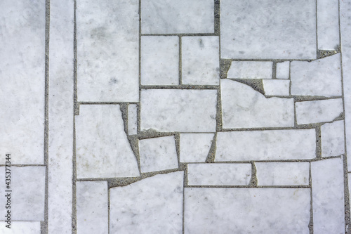 background cracked marble tiles on the sidewalk top view