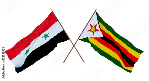 Background for designers, illustrators. National Independence Day. Flags Syria and Zimbabwe