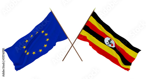 Background for designers, illustrators. National Independence Day. Flags The European Union and Uganda