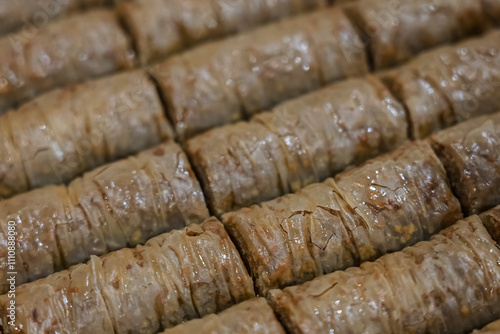 Baclava layered pastry dessert made of filo pastry, filled with chopped nuts, and sweetened with syrup or honey. Baclava or pakhlava the sweet pastries of Ottoman, Arabian, Persian and Greek cuisine