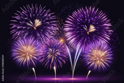 Banner Purple Firework celebrate anniversary happy new year 2024, 4th of july holiday festival. Banner Purple firework night time National holiday. Violet firework New year 2025 festival copy space
