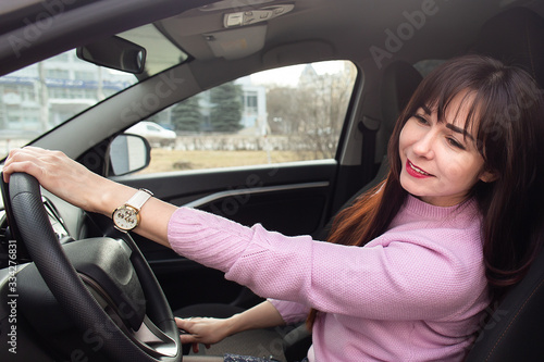 Beautiful brunette driving a car