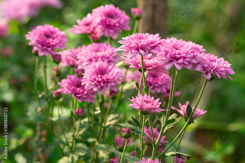 Beautiful chrysanthemums blooming in the garden
