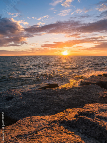 Beautiful Golden hour sunset sky over the sea at the beach,Thailand. sunset sky at the beach for background.