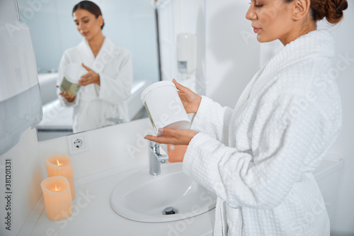 Beautiful healthy smiling caucasian woman is doing beauty procedures at spa and healthcare salon