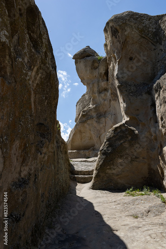 Beautiful landscape view on rock stones in Uplistsikhe ancient cave town, Georgia
