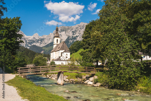 Beautiful view of church of St Sebastian in the summer, Bavarian Alps, South Germany