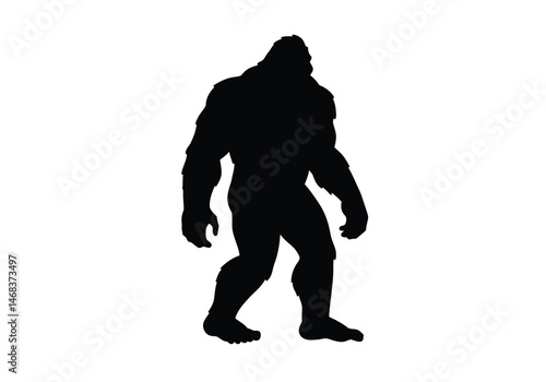 Big foot silhouette. This image showcases a dark outline of Bigfoot, symbolizing the mystery, folklore, and legendary status of this elusive cryptid. Vector clipart illustration design.
