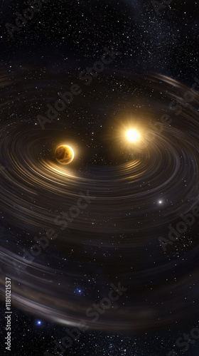 binary star system with two stars in gravitational dance, surrounded by cosmic beauty