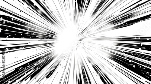 Black and white sunburst abstract on white and transparent background. Ray burst, explosion, comic big bang. Superhero action speed frame. Radial lines. Monochrome design element. Textured backdrop.