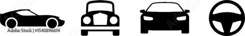 Black Car Silhouettes Front Side View Steering Wheel Set
