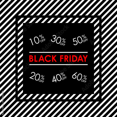 Black Friday sale banner. 10,20,30,40,50,60 percent price off sale. Vector illustration.