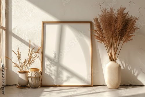 Blank frame for mockup, frame hanging on a wall, boho modern style.