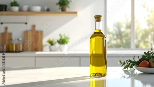 Blank Olive Oil Bottle Mockup in Minimal Kitchen Lifestyle Setting