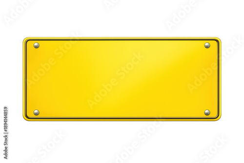 Blank yellow metal information sign with rounded corners, ready for text, isolated on transparent background
