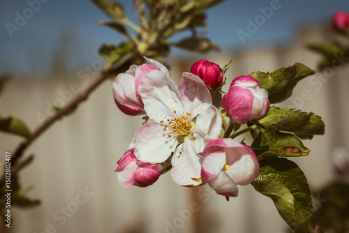 Blooming apple-tree branch close-up in spingtime