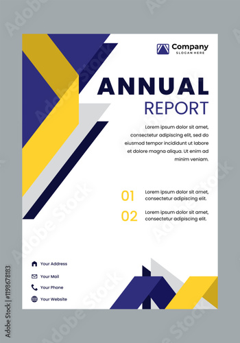 Blue and yellow vector abstract corporate business annual report design with modern and simple style