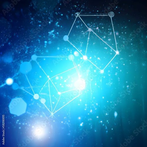 Blue background with a network of connected lines and dots