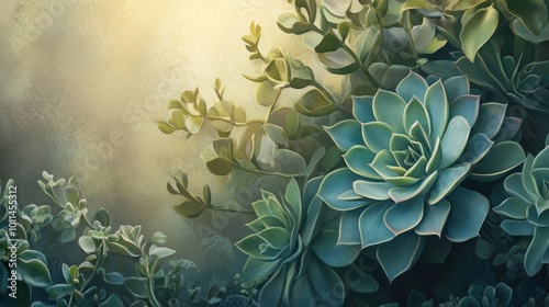 Botanical background with lush succulents, Natural Wallpaper