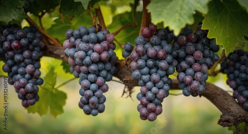Bountiful nebbiolo grape clusters in a vineyard awaiting September picking