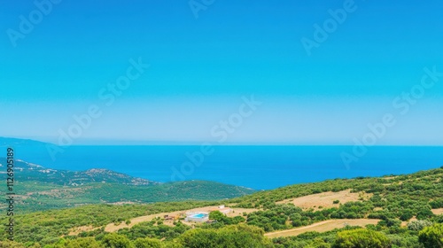 Breathtaking Coastal Landscape with Clear Sky and Rolling Green Hills
