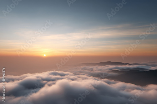breathtaking dawn scene where sun rises above horizon illuminating clouds with single ultrabright ray of light