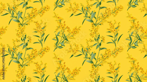 Bright floral seamless pattern featuring Solidago flowers on a cheerful yellow background perfect for fabric design and home decor