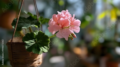 Bright Pink Geranium Flower Blooming Gracefully in Handheld Vintage Vase Showcases Bold Natural Beauty Today