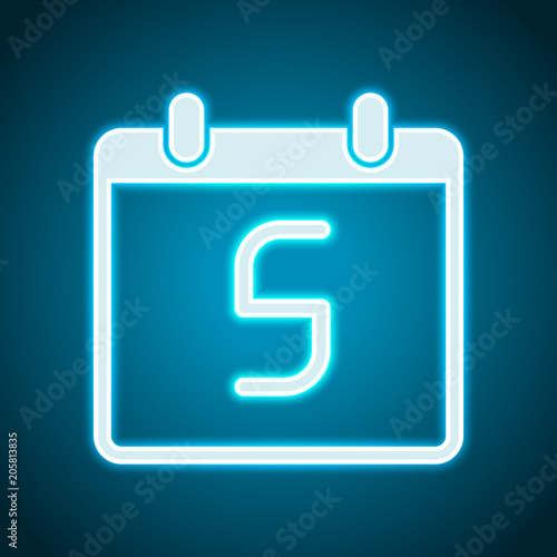 calendar with 5 day, simple icon. Neon style. Light decoration icon. Bright electric symbol