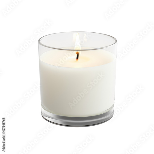 Candle in white glass isolated on transparent white background, clipping path, pen tool
