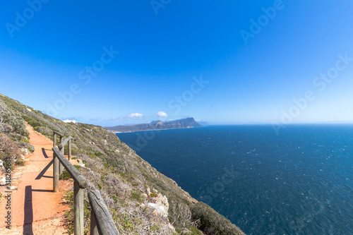 Cape Point walkway from point back to old lighthouse with view of the cape peninsula - South Africa