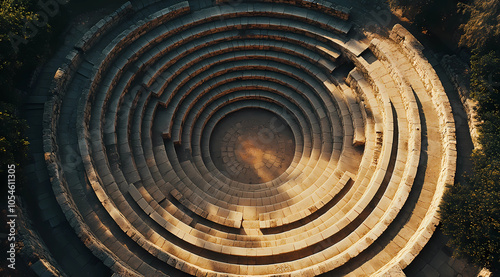 Captivating Top-Down View of a Spiral-Shaped Amphitheater: Unraveling the Mesmerizing Design of Ancient Performance Spaces