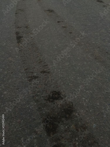 Car wheel tracks on the asphalt
