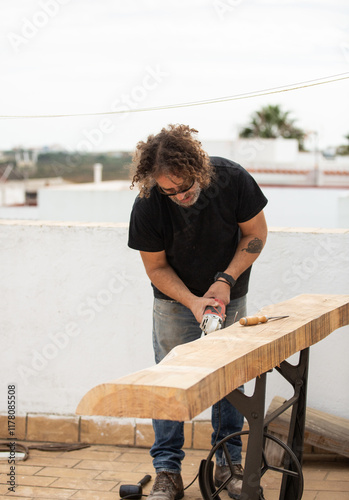 Carpenter working using hand tool
