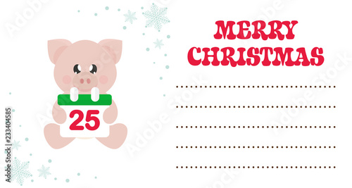 cartoon cute pig with christmas calendar sitting on the christmas card