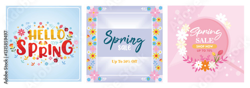 Cheerful spring sale advertisement with discount offer.