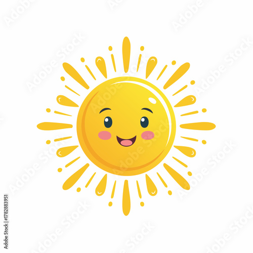 Cheerful sunshine character radiating warmth and happiness, perfect for children's books, educational materials, and summer promotions with positive vibes