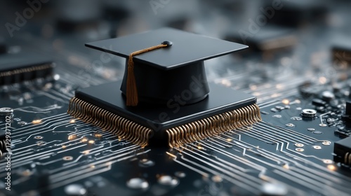 Chip with graduation cap symbolizes the blend of technology and education in the modern learning environment