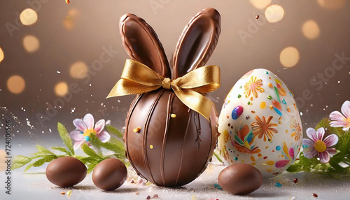 Chocolate easter egg with golden bow