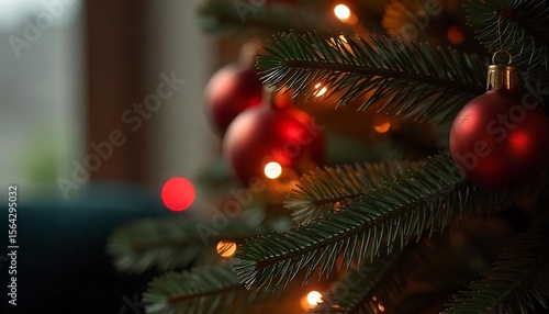 Christmas tree with Christmas Loading text and red bokeh lights, created with generative ai