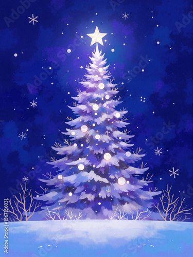 Christmas tree with snow in the night