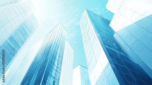 City skyscrapers, low angle view, sunny day, business district, architectural design