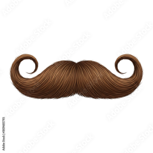 Classic brown curled mustache with vintage style and elegant ends