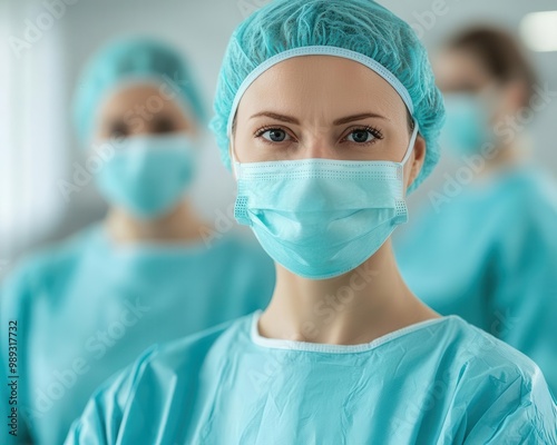 Clean medical facility with staff wearing masks and gloves, Healthcare hygiene, Infection prevention